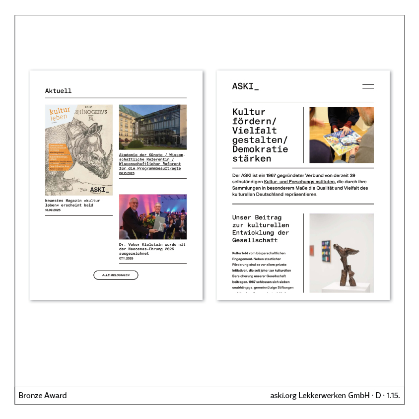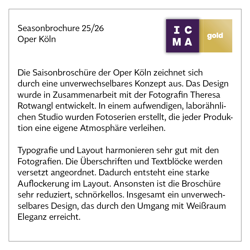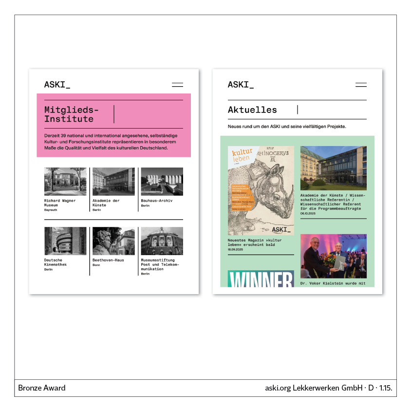All/ACO Ahlmann SE/Attacke/Axel Springer/CS Caritas Socialis/Certificates/Coop/Detmolder Schule für Gestaltung/Egger & Lerch/Enercity AG/FNM/Faber-Castell/Formdusche/Håndværkerforeningen/Kontakt Mediapartners/KölnBusiness/Lekkerwerken/Luis Trenker/Mugele’s/Munich International Stone Center/Oper Köln/Peperoni/RG Verlag/RYZE Digital/Red Bull Media House/Schleiner + Partner/Sobha/Studio Piraat/Sven Kaun-Feederle/Transgourmet/Trophies/Van Laak Medien/ZEW/v. Bodelschwinghsche Stiftungen/