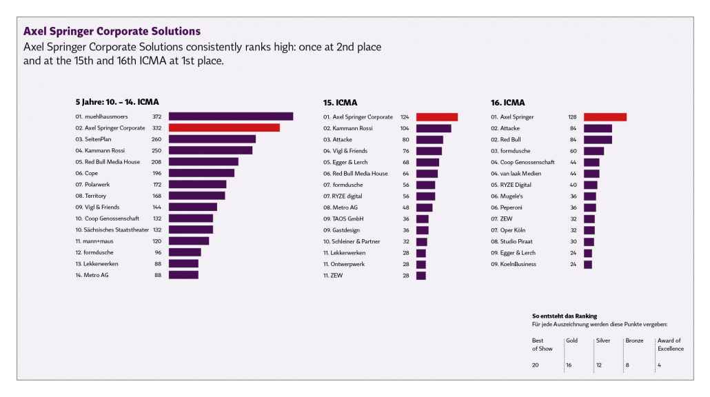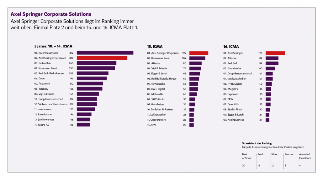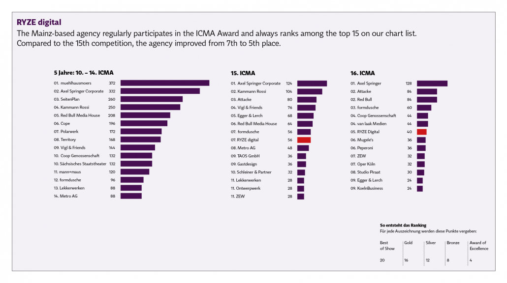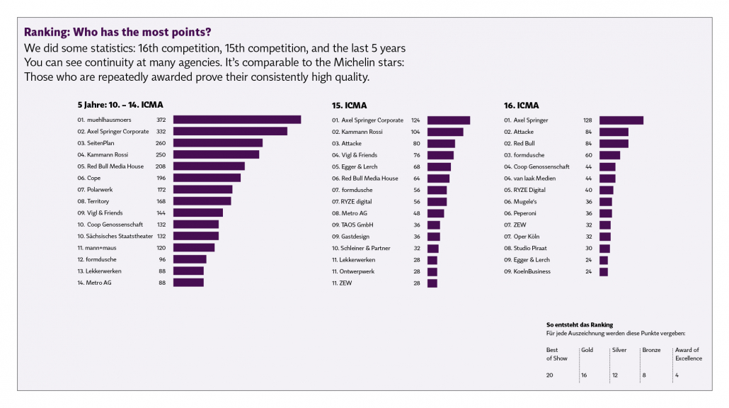 We did some statistics: 16th competition, 15th competition and the last 5 years. You can see the continuity at many agencies. It’s comparable to the Michelin stars: those who are repeatedly awarded prove their consistently high quality.