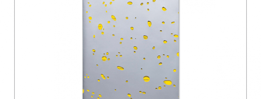 Auch besonders: Der laser gestanzte Schutzumschlag gibt die metallene Wand am Firmengebäude wider. Unter dem Cover befindet sich der Lebenslauf des Firmengründers von 1961 auf gelbem Papier. Durch die gestanzten Löcher lässt sich die Schrift der Schreibmaschine erkennen. So steht auch das Cover für Tradition und Innovation.