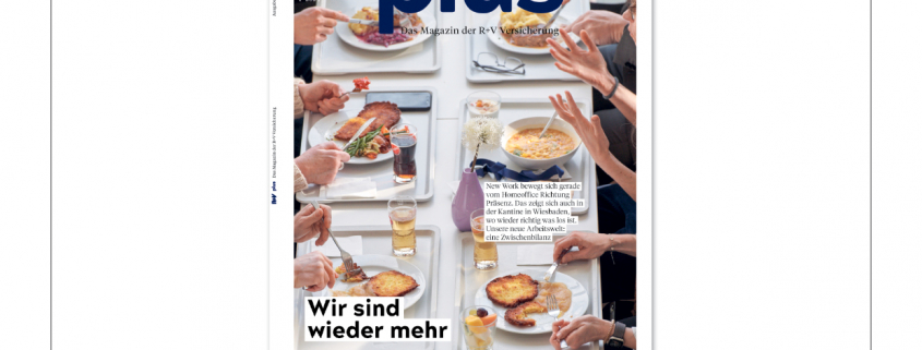 Der Name „plus” des R+V-Magazins ist vom Firmennamen inspiriert und soll ein Mehrwert für die Leser sein. Die interne Marktforschung vom Oktober 2024 belegt die hohe Bindung der Leser an das gedruckte Magazin. Das 64-seitige Heft erscheint viermal jährlich für Mitarbeitende, Vertriebspartner, Rentner und Elternzeitler.