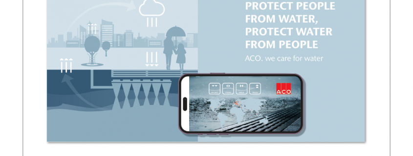 ACO, als WaterTech Unternehmen, integriert seine Mission in die visuelle Kommunikation mit einem neuen Claim und einem Corporate Design Refresh: “Wasser ist unser Element.” Die blaue Farbpalette betont die Verbundenheit mit Wasser. Der Claim “ACO. we care for water” reflektiert die Wertschätzung für Mensch, Umwelt und die Zukunft, als Teil der ACO DNA.
