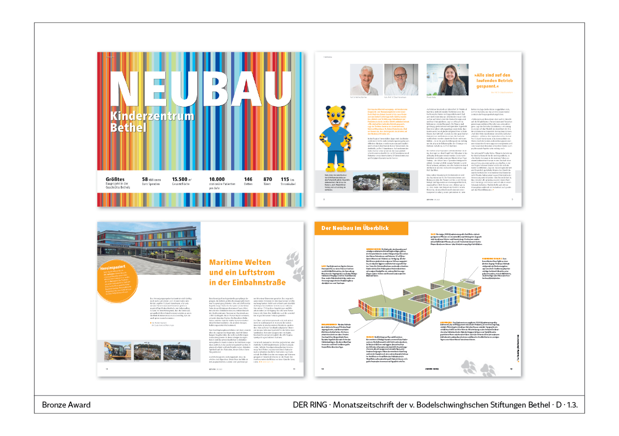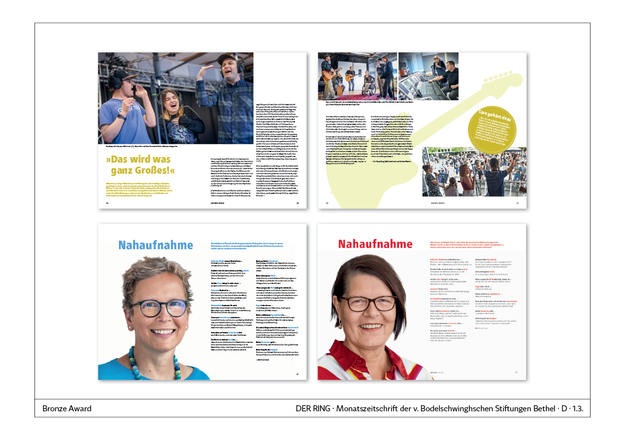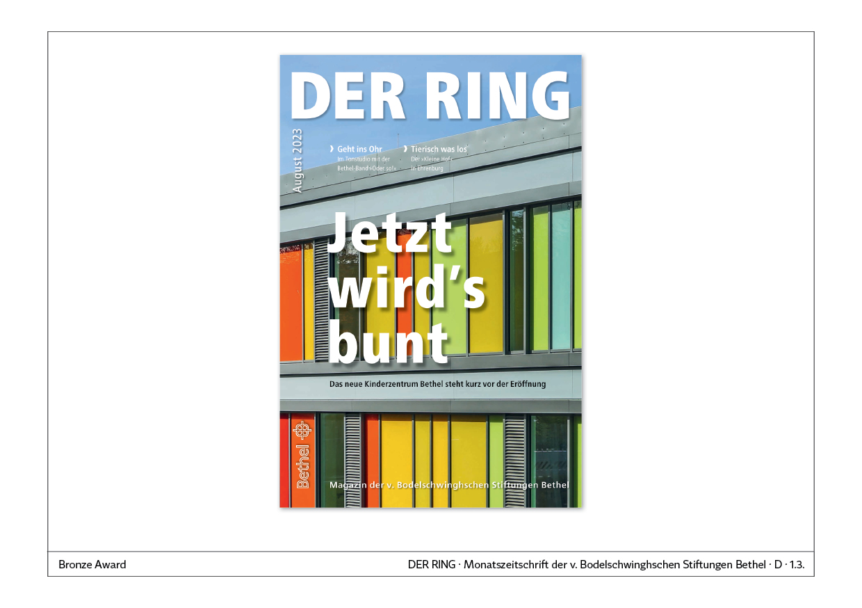 Im April 2023 präsentierte die Abteilung Presse + Kommunikation der v. Bodelschwinghschen Stiftungen Bethel nach einem umfassenden Relaunch die monatliche Mitarbeitenden-Zeitschrift DER RING in neuem Design. Das Magazin zeichnet sich durch ein frisches Layout aus, das weniger Textmengen und Standardbilder, dafür mehr Gestaltung, Grafiken und Weißraum bietet. Inhaltlich setzt DER RING nun auf neue Schwerpunkte, ein umfassendes Titelthema und einen zukunftsorientierten Blick.